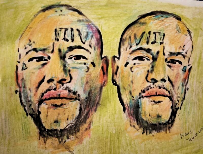 Hieronder staat een foto van Melchior met "Het boed of Jezus" op zijn voorhoofd getatoeëerd. Helaas vond hij deze tekening erg lelijk, liet Melchior me officieel via e-mail weten. Hij zou niets betalen voor de meer dan 100 foto's en video's die ik die dag heb gemaakt, ook al zou hij me er iets voor hebben gegeven. (de reiskosten waren zelfs een voorwaarde van mij geweest) Een foto die ik wilde maken tijdens de zogenaamde bruiloft, heb ik vervolgens gebruikt voor een fototekening. Melchior had mij persoonlijk gevraagd als fotograaf en videograaf. Kort nadat ik de foto's had gemaakt, sprak ik toevallig met de officiële vrouw van Melchior tijdens een vergadering en in juli 2023 hoorde ik dat het zogenaamde "getrouwde stel" waarvan ik de rapportage had gemaakt, al uit elkaar was gegaan.