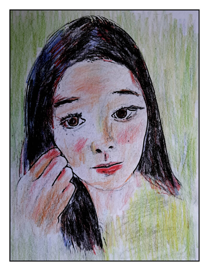 ONE OF THE FIRST PHOTODRAWINGS I MADE FOR BIGO-LIVE WAS A DRAWING OF A YOUNG WOMAN WHO COULD HAVE JUST LOSE HER GRANDMA IN HER ARMS. I ASKED IF SHE HAD ANOTHER PICTURE OF HER AND SHE SENT ME A PICTURE THAT I WANTED TO MAKE THE PHOTODRAWING BELOW.