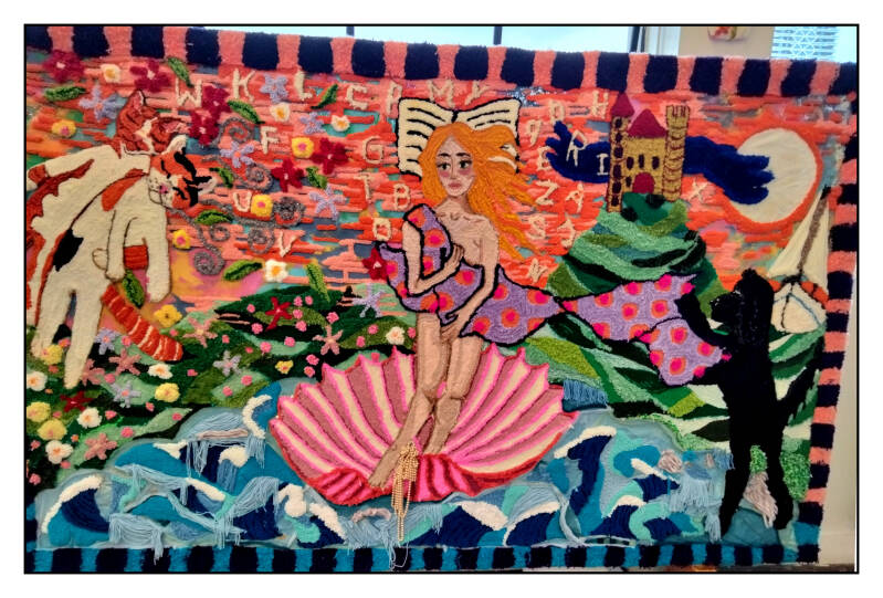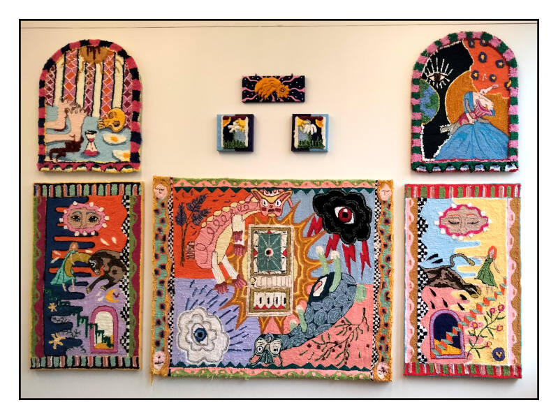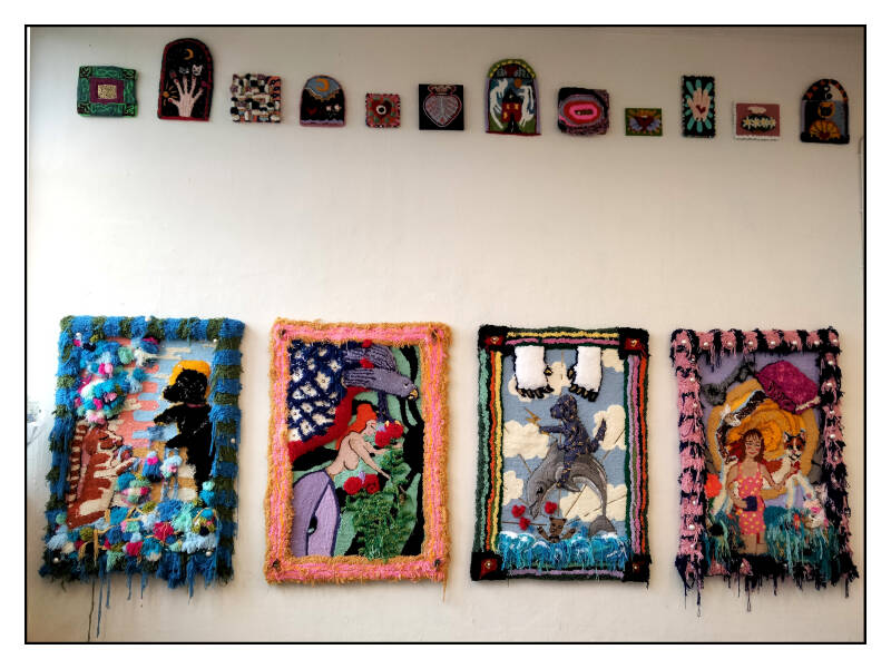 This artist immediately caught my attention with her work. Her color and use of materials especially appealed to me. When I walked past her work the second time I saw her and asked if I could take a picture of her. This was no problem at all and she asked me if she could also receive the photos. Of course I want to do that and then I also made a special photo drawing of her, because I also thought she looked very special.