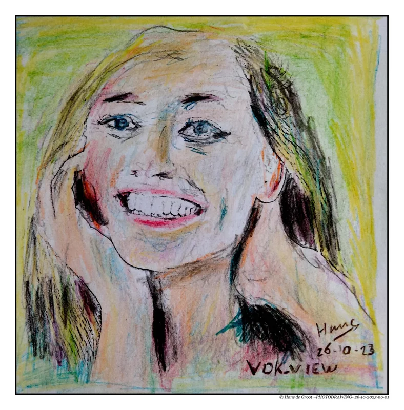 Vaak reed ik met de terugweg vanaf VDK ook naar de openbare bibliotheek van Rijswijk, de plaats waar ik regelmatig een goede kwaliteit printjes van photodrawings maak. Opvallende beelden waren natuurlijk de 2 stokoude bomen, waarvan er inmiddels 1 van weg gehaald. Ik vond het prachtig en vooral wanneer ik dan helder groene parkieten op de takken zag. En dit natuurlijk met als achtergrond een helder blauwe hemel.