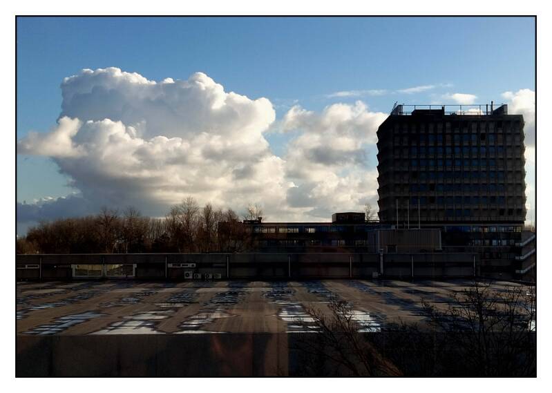 En het welbekende uitzicht vanuit VDK, het zogeheten Sijthoff Gebouw, maar dan dus wat close. Het is het gebouw waar ik een paar jaar een atelier heb gehad. Clik hier na op ATELIER SIJTHOFF GEBOUW om het te kunnen zien.